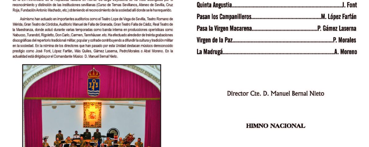Interpretado por la Unidad de Música del Cuartel General de la Fuerza Terrestre, bajo la dirección del Cte. D. Manuel Bernal Nieto. Constituyó un homenaje merecido para esta prestigiosa Unidad de Música que procede de la que fue del regimiento de Infantería Soria 9, con el que llegó a Sevilla en 1876.
